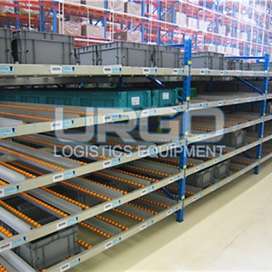 优格流利式货架采用辊轮铝合金,钣金等流利条,利用货物台架的自重,从一边通道存货,另一边通道取货实现先进先出,存储方便,以及一次补货多次取货。该货架存储效率高,适合大量货物的短期存放和拣选。可配电子标签,实现货物的轻松管理,常用滑动容器有周转箱,零件盒及纸箱,适合大量货物和短期存放和拣选。适合大量货物的短期存放和拣选。广泛应用于配送中心、装配车间以及出货频率较高的仓库。
